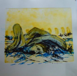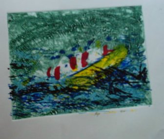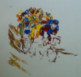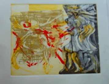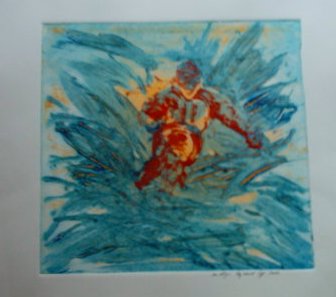 The prints of sports and dancing or bowling are a combination of different printing technics. Sceen etching and an own developes high-deep printing methode within a colourfull sceam of colours making these pictures.
